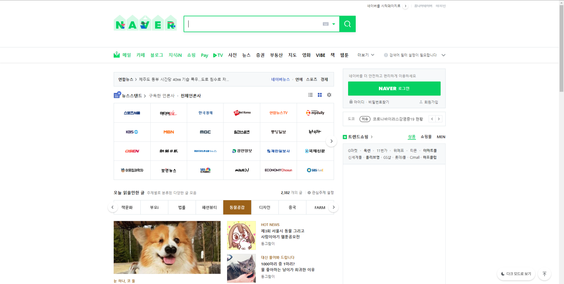 예: 컴퓨터로 본 네이버 뷰포트컴퓨터 화면으로 본 네이버