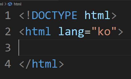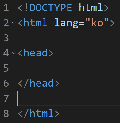 이처럼 <html>과 같이 사용한경우 웹사이트의 언어를 정의합니다.