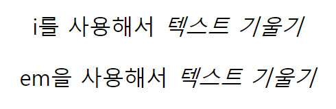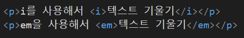 <em>은 문장 또는 문장의 한 부분을 강조할때 사용합니다.