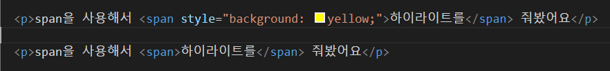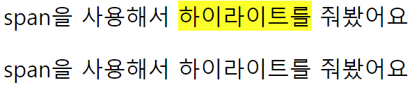 예를 들어서 문장의 어느 한 부분에 하이라이트를 주고 싶을 때 사용할 수 있습니다.