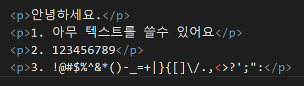 여기서 p 는 paragraph (문장)을 뜻합니다. 말 그대로 문장 또는 어떤 텍스트를 쓸 때 사용합니다.