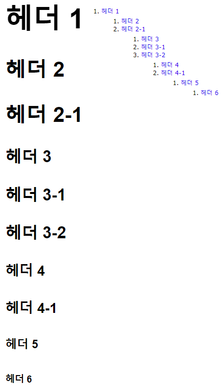 책 앞에보면 목차가 있죠? 헤더를 잘 쓰면 웹 페이지의 목차 역할을 합니다.