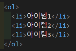 <ol> + <li> = 오더드 리스트 라는 단어가 나오고