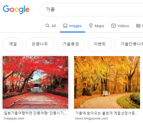 예를 들어, 구글 이미지에서 "가을" 을 검색하고