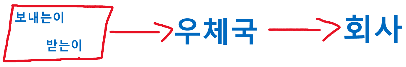 우체국을 통해서 회사로 보내집니다.