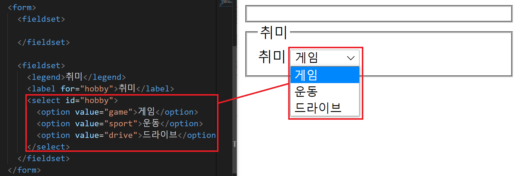 오늘은 <form>에서 사용되는 <select>, <fieldset>, 그리고 <legend>에 대해서 알아볼게요