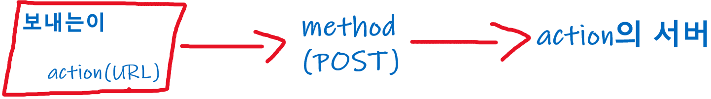 <form>에는 action 과 method 속성이 사용되는데