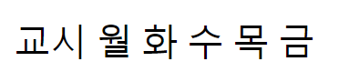 이 시간표는 첫 번째 가로줄에는 요일, 제일 왼쪽 세로줄은 1교시, 2교시, 등 교시가 들어갑니다