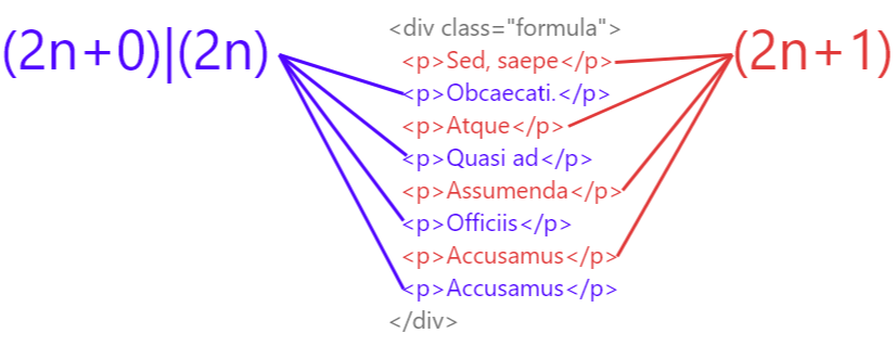 첫번째 자녀 부터 시작해서 매 두번째 <p>에 주어진 스타일을 적용합니다 (1, 3, 5, 7...)