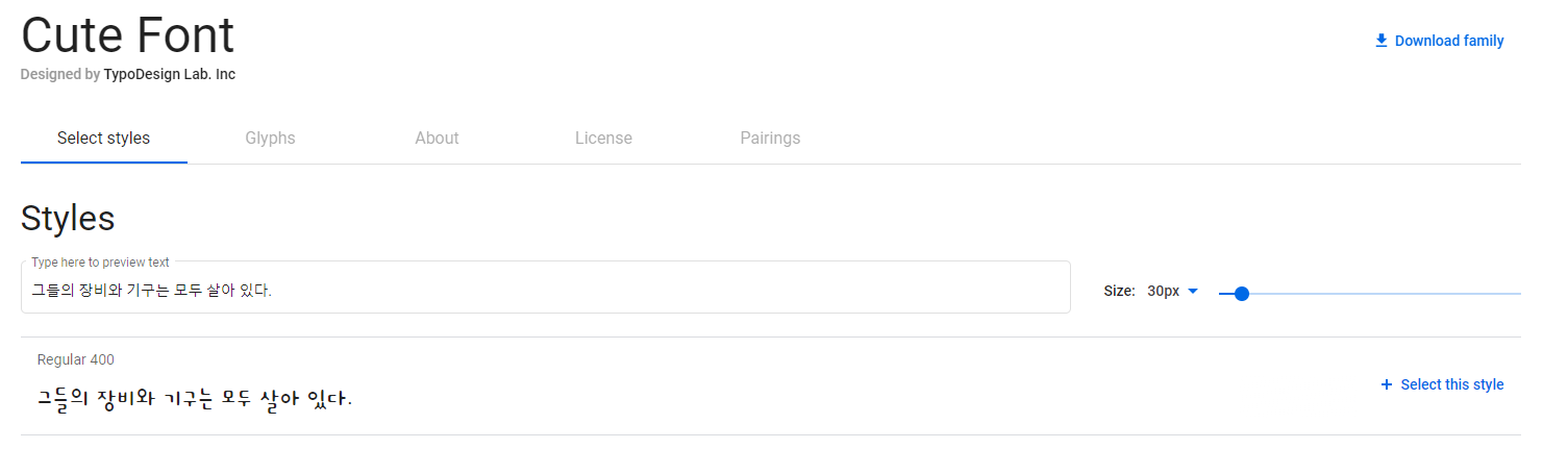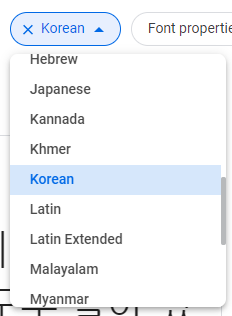 1. 구글 폰트에서 언어를 한국어로 설정하세요
